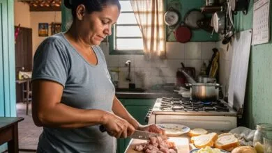 Mi madre cortaba el pollo, picaba los huevos y untaba mantequilla en el pan con el mismo cuchillo.