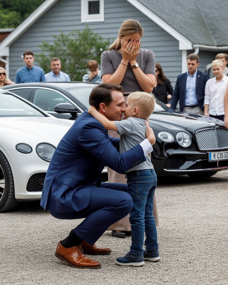 Una tarde húmeda, mientras Ethan jugaba baloncesto improvisado en el patio, escuché el sonido de motores desconocidos. Al levantar la vista, vi tres autos negros y lujosos detenerse frente a mi pequeña casa de pintura descascarada.