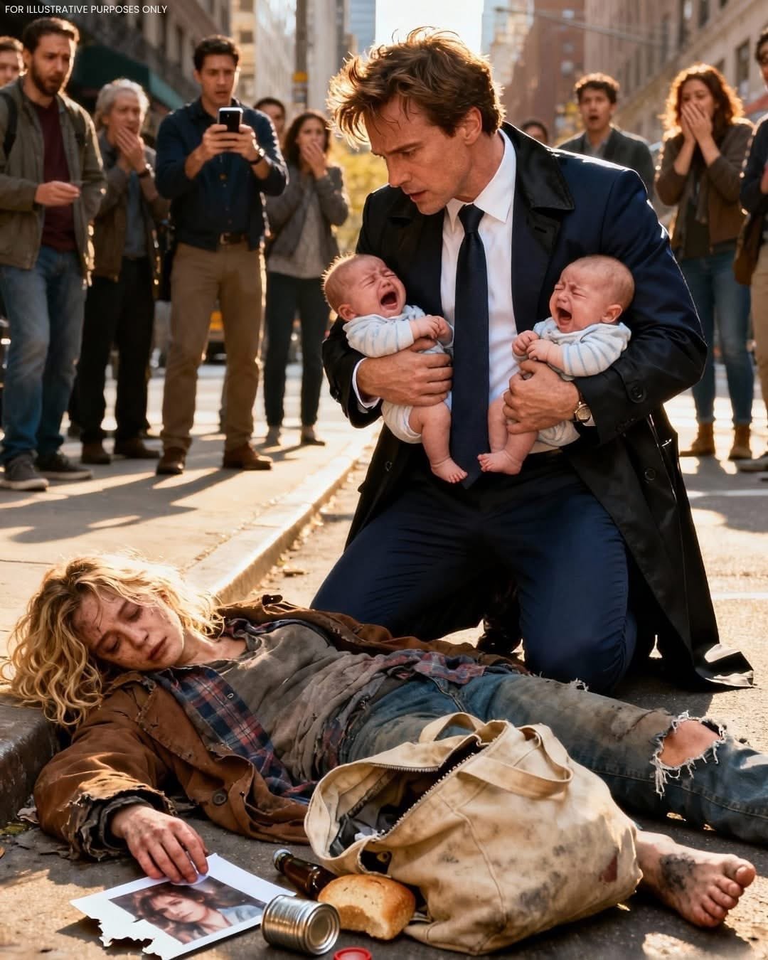 Mientras la ambulancia se alejaba, Pedro quedó allí, inmóvil en medio de la calle, sosteniendo a los dos bebés en brazos, rodeado de flashes de curiosos —