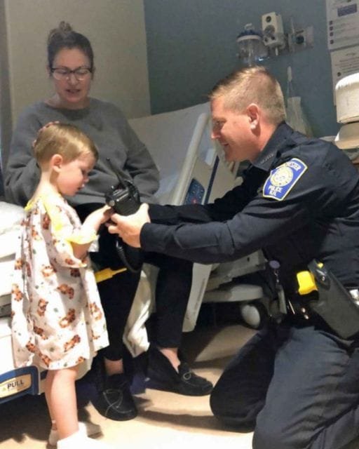 Era un oficial de policía. Gran sonrisa, voz amable, de esos que hacen trabajo comunitario. “Me dijeron que había un pequeño valiente por aquí”, dijo, arrodillándose junto a la cama.