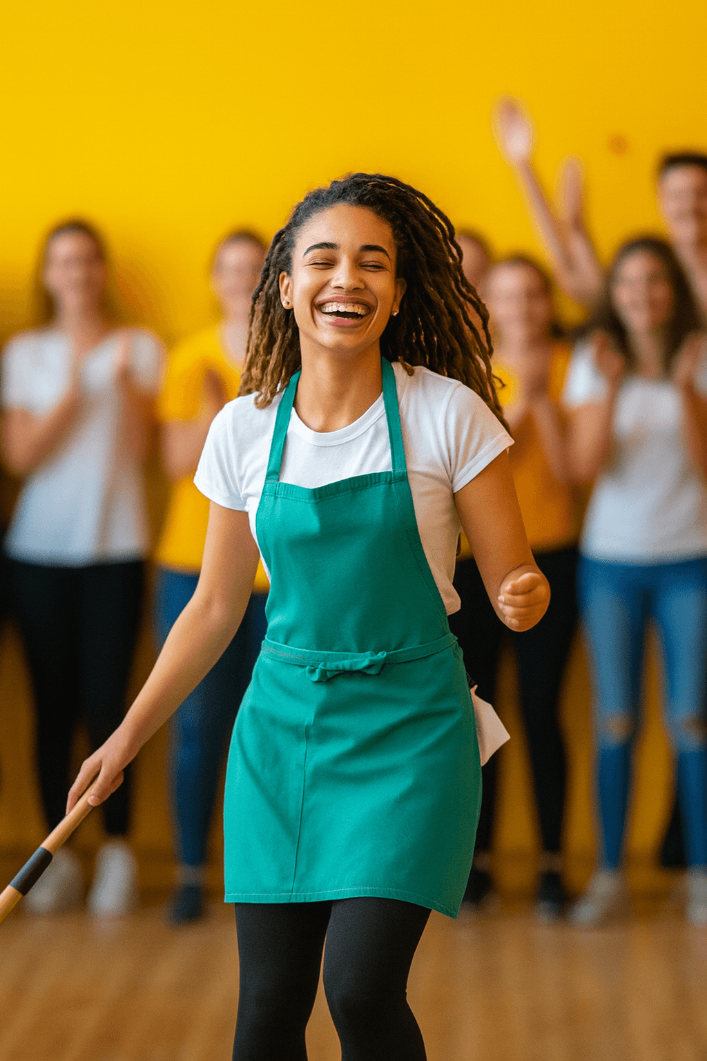 Minutos antes, todo era risas y bromas. Ahora, todos estaban hipnotizados. No estaban viendo a la señora de la limpieza. Estaban viendo a una artista. Alguien con pasión, habilidad y un mensaje poderoso — sin decir una sola palabra.