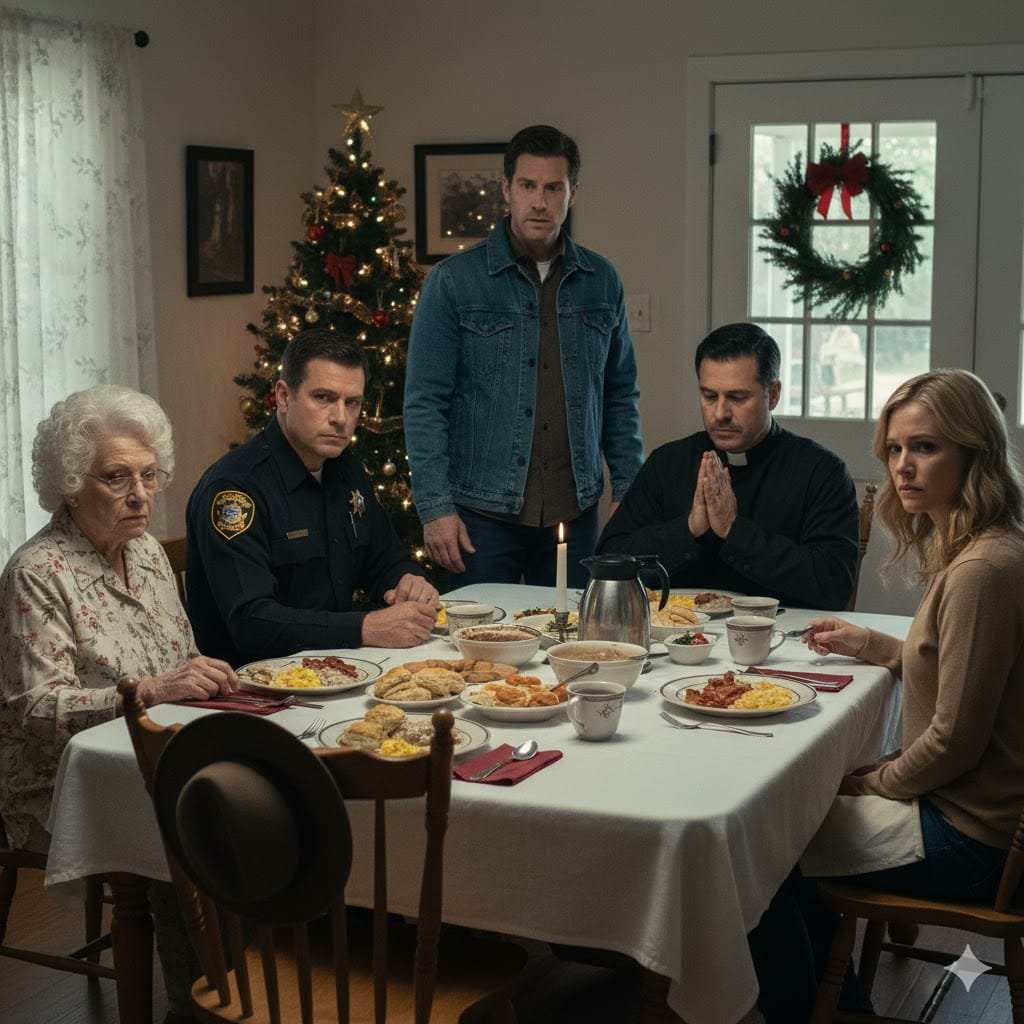 En la cabecera de la mesa estaba el sheriff Thomas Reed, con su sombrero cuidadosamente colocado junto al plato.