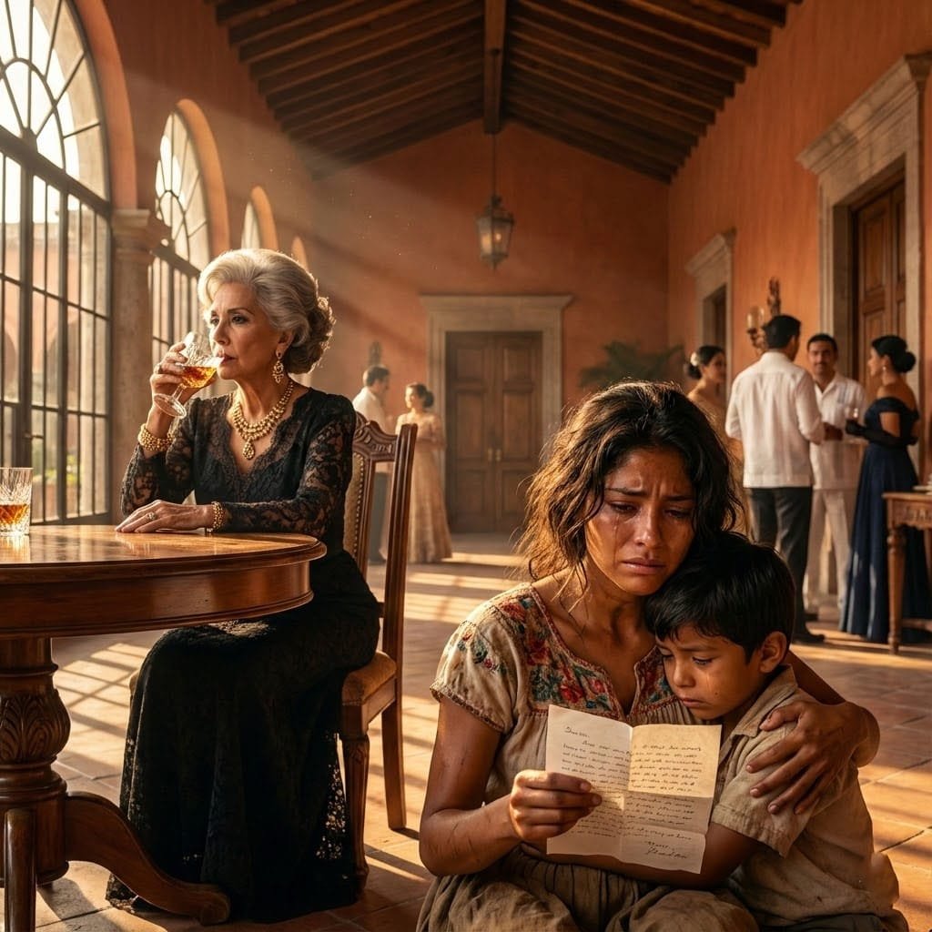 Debajo de la mesa, entre zapatos elegantes y tacones afilados, Daniel encontró su coche… y algo más. Un papel blanco doblado, justo al lado de la silla de Beatriz. Lo abrió con curiosidad. Había aprendido a leer hacía poco.