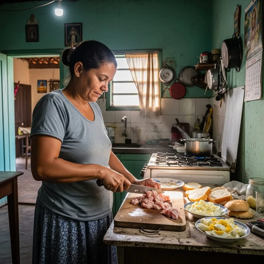 Mi madre cortaba el pollo, picaba los huevos y untaba mantequilla en el pan con el mismo cuchillo.
