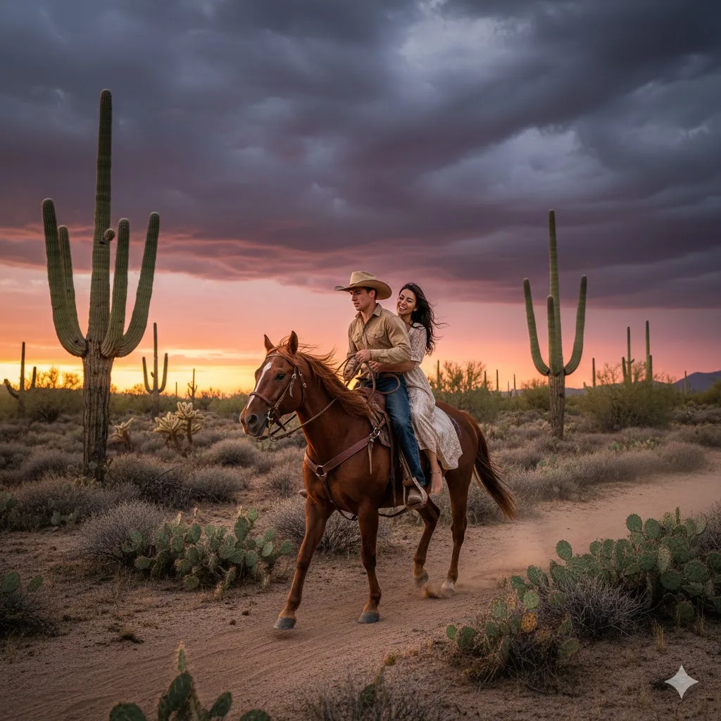 Su rutina era tan predecible como el amanecer. Se despertaba antes del alba, cuando las estrellas aún permanecían en el cielo violáceo. El aroma del café recién hecho llenaba la pequeña casa de adobe mientras los caballos relinchaban afuera. Los días transcurrían entre reparar cercas, cuidar el ganado y mantener la bomba de agua funcionando. Por las noches, después de una cena solitaria, se sentaba en el porche a observar las luciérnagas danzar entre los cactus en flor. A veces tocaba la vieja guitarra de su padre, dejando que melodías melancólicas se perdieran en la inmensidad.
