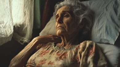 La madre anciana descansaba en su cama, frágil y cansada después de una vida llena de sacrificios y amor.