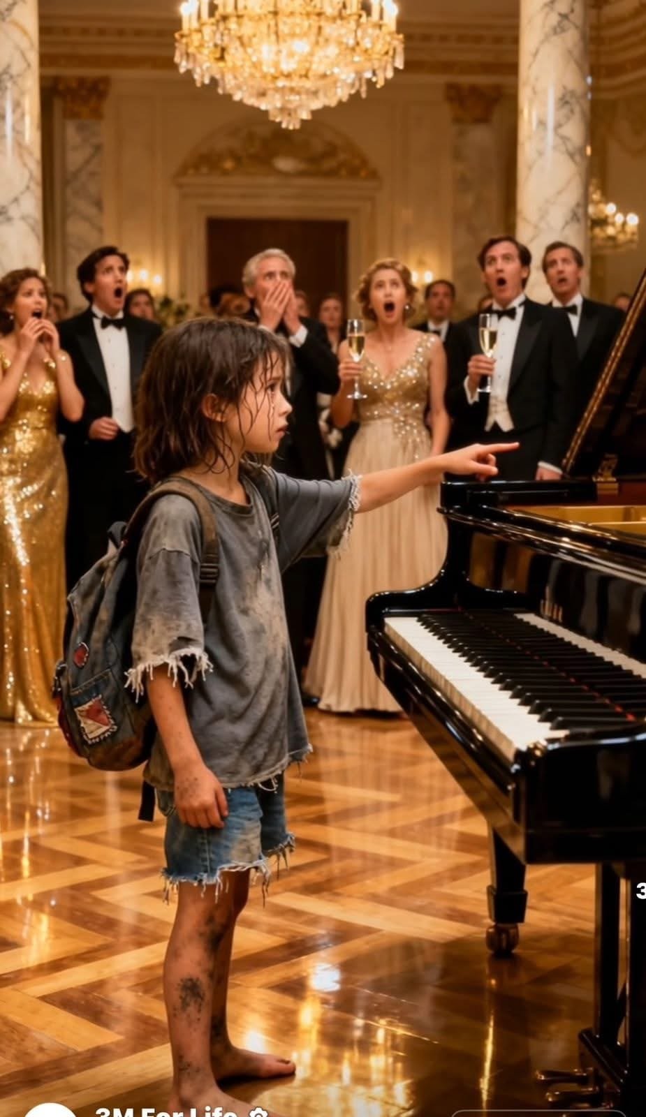 Pero antes de que alguien se moviera, la niña dio un paso al frente y señaló el piano de cola negro, brillante bajo la lámpara de cristal.