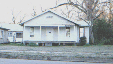 Finalmente, llegamos a una casa sencilla con contraventanas blancas y un jardín lleno de flores coloridas.