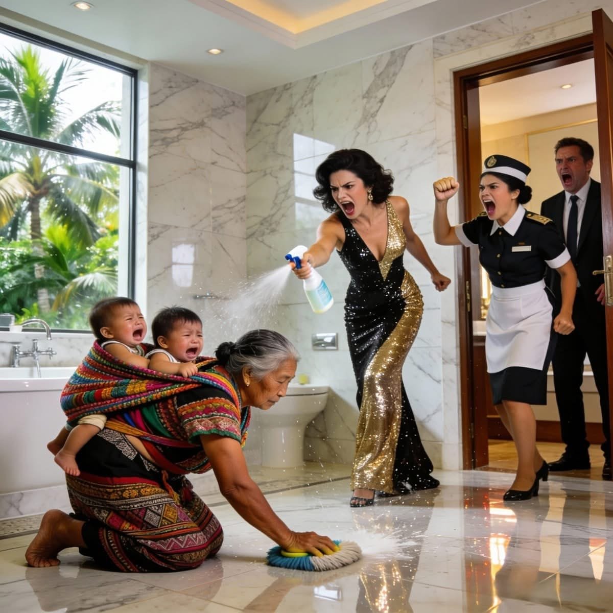Estaba de rodillas sobre el mármol frío, fregando el suelo detrás del inodoro. En su espalda estaban mis dos hijos, sujetos con un paño que ella misma había cosido para poder cuidarlos mientras limpiaba.
